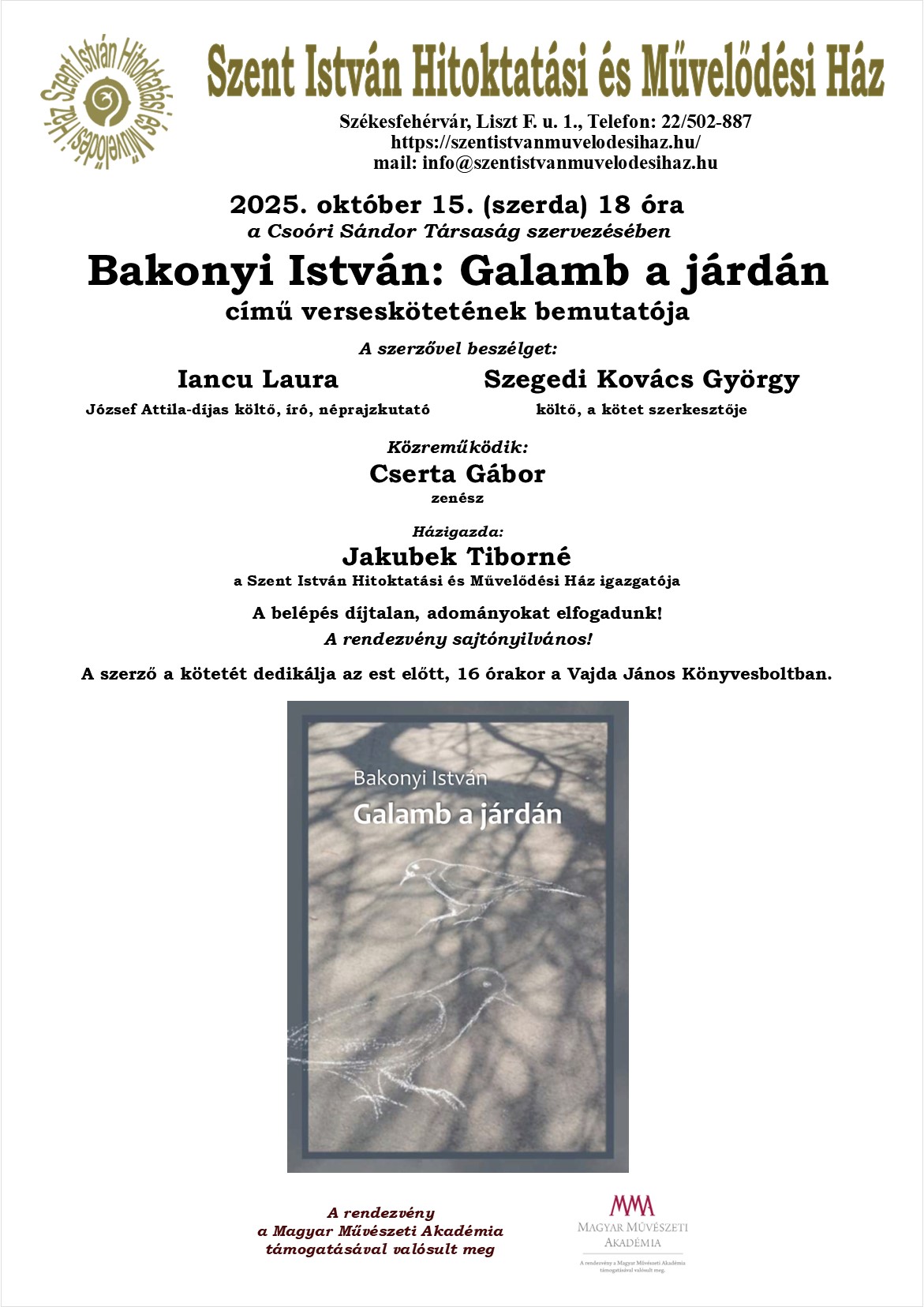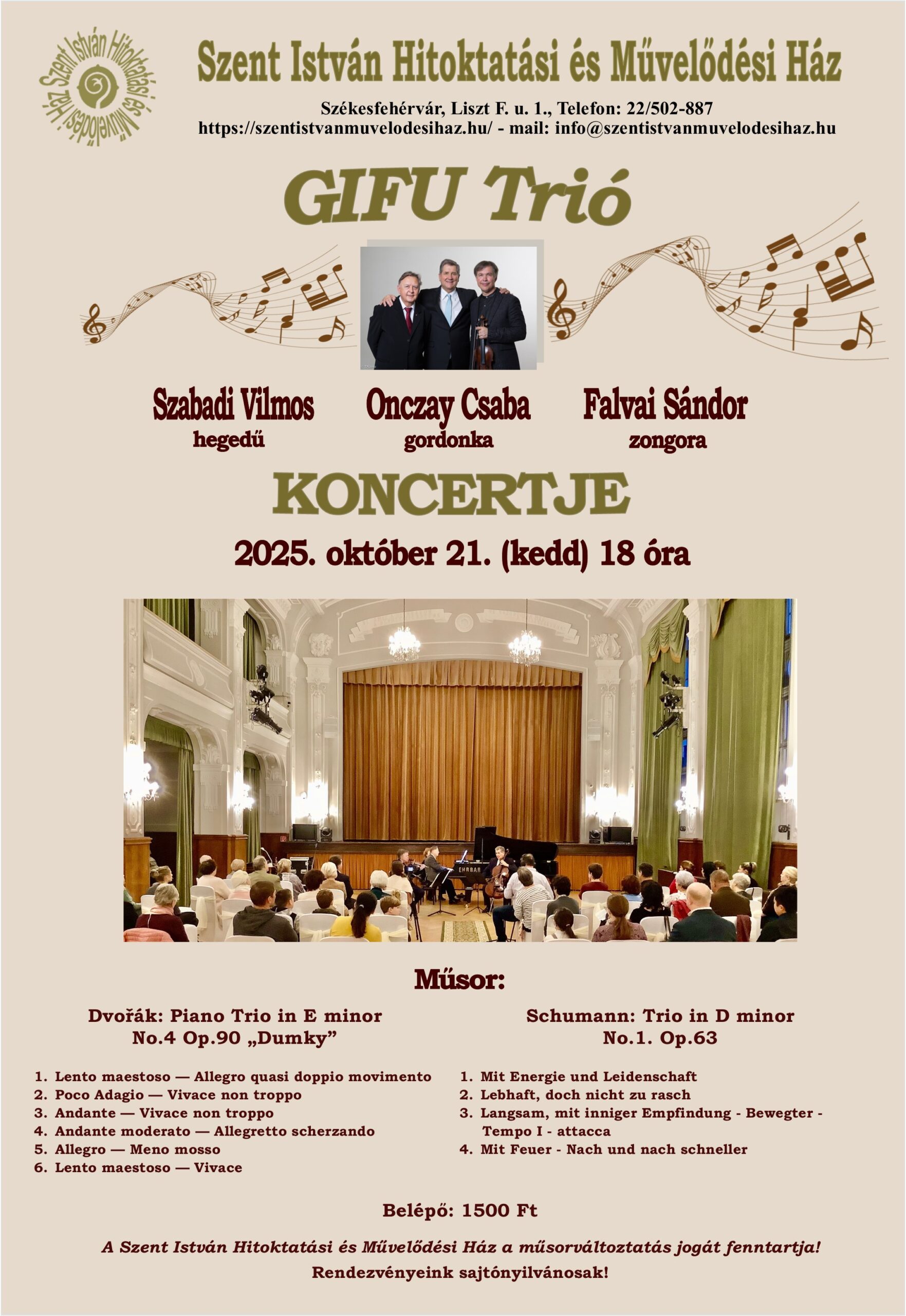 Október 21. (kedd) 18 óra Gifu Trió Szabadi Vilmos hegedű Onczay Csaba gordonka Falvai Sándor zongora Műsoron: Dvořák: Piano Trio in E minor No.4 Op.90 „Dumky” Lento maestoso — Allegro quasi doppio movimento Poco Adagio — Vivace non troppo Andante — Vivace non troppo Andante moderato — Allegretto scherzando Allegro — Meno mosso Lento […]
