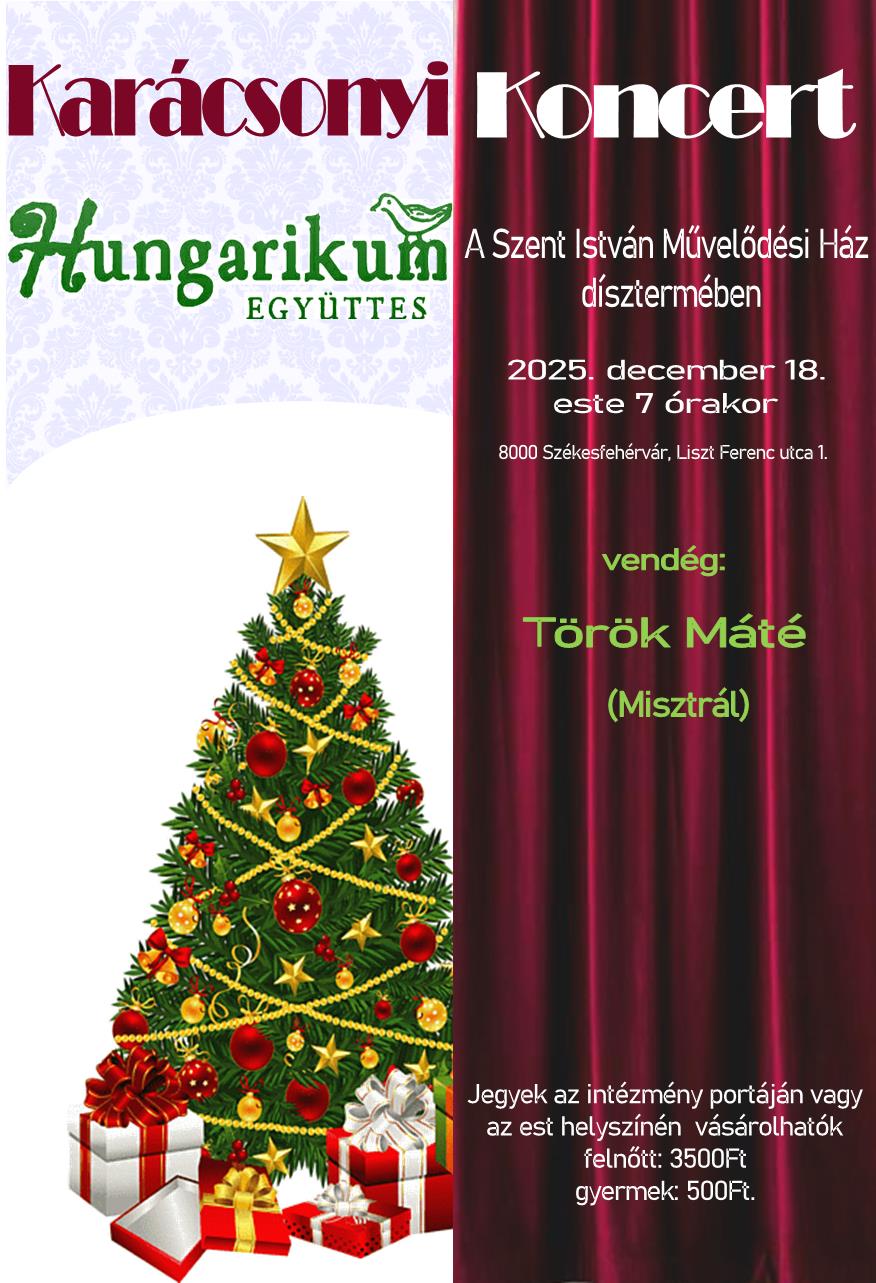 December 18. (csütörtök) 19 óra a Hungarikum együttes karácsonyi koncertje Vendég: Török Máté (Misztrál együttes) Belépődíj: 3500 Ft