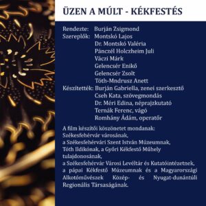 Rendezte: Burján Zsigmond, Szereplők: Montskó Lajos, Dr. Montskó Valéria, Pánczél Holczheim Juli,Váczi Márk, Gelencsér Enikő, Gelencsér Zsolt, Tóth-Mundrusz Anett, Készítették: Burján Gabriella, zenei szerkesztő , Cseh Kata, szövegmondás, Dr. Méri Edina, néprajzkutató, Ternák Ferenc, vágó, Romhány Ádám, operatőr