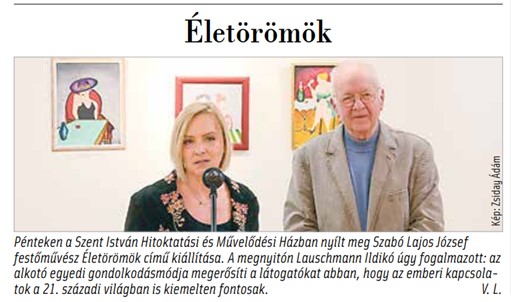 A Szent Korona Galéria mindig színvonalas kiállításokkal örvendezteti meg a képzőművészeteket kedvelő közönséget, április 4-én Szabó Lajos József festő kiállítása nyílott meg. A tárlatot Lauschmann Ildikó egyedi bútortervező nyitotta meg, akit intézményünk törzsközönsége már ismerhet, hiszen például Klotz Miklós Torockóról szóló fotóalbumának bemutatóját is ő vezette 2023. márciusában.