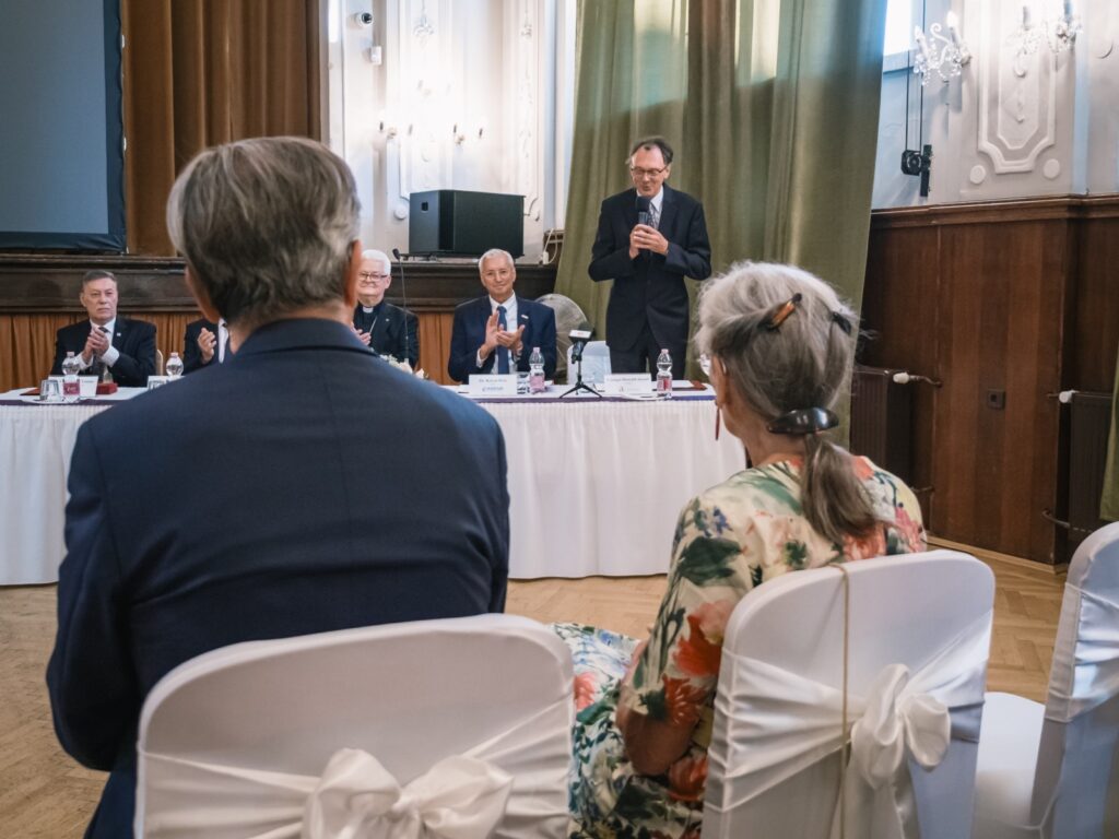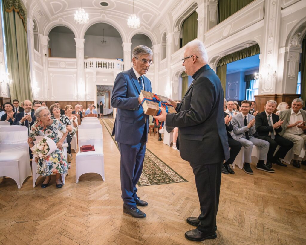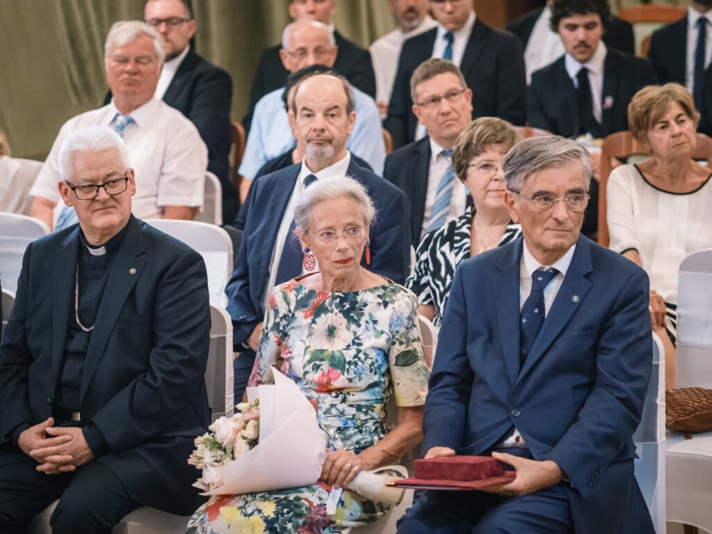 „Különleges és egyben felemelő döntés született a 2025. évi díjazott Károlyi György gróf és felesége, Angelica kiválasztásával! Habár két személyről van szó, mégsem nyelvtani tévedés a ’díjazott’, így egyes számban, mert ők ketten valóban EGY, pontosan úgy, ahogyan azt a házasságról a Szentírás tanítja. Ez az egység megnyilvánul mindabban, amit tettek és tesznek.” – mondta Fejérdy Tamás, hozzátéve, hogy a jelenlévők valószínűleg mindannyian jól ismerik azt a helyszínt és azt a csodát, amelynek központi helye a fehérvárcsurgói Károlyi Kastély, annak Károlyi György és Angelica által elkezdett, kibontakoztatott és kiviruló újjászületése, folyamatos működtetése.
